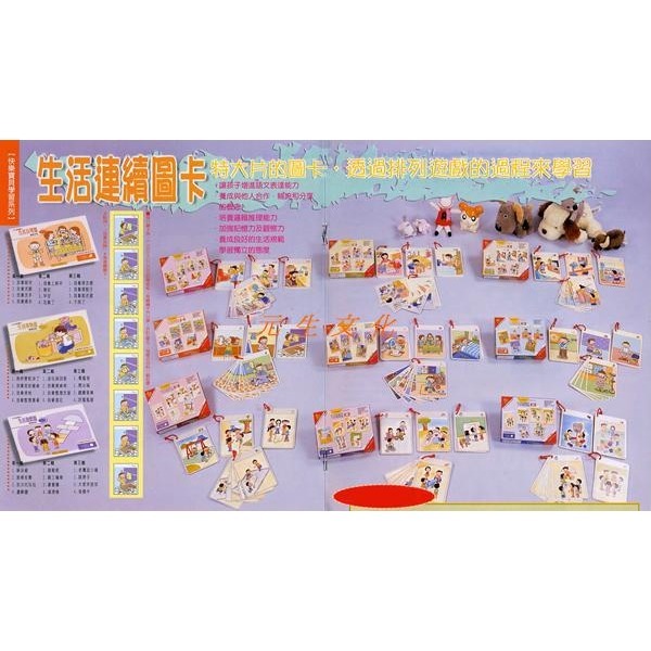 3.《生活連續圖卡系列》培養邏輯推理能力、加強記憶力及觀察力、養成良好的生活規範、讓孩子增進語文表達能力、學習獨立的態度與養成與他人合作、輪流和分享的概念。