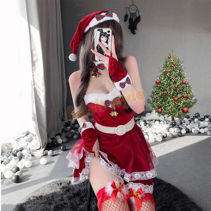內容物:洋裝+圍脖+聖誕帽+袖套+白色腰帶+網襪