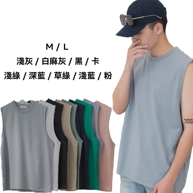 ✨2023新款✨韓國 素面寬肩背心側點綴 無袖上衣 男女不拘 情侶款 春夏新款 素面背心 九色 百搭款