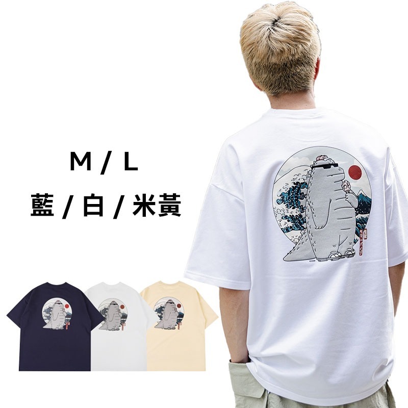 ✨2024新款✨浮世繪立體哥吉拉 短T 細絨布 短袖上衣 哥吉拉造型 男女不拘 情侶T 春夏新款