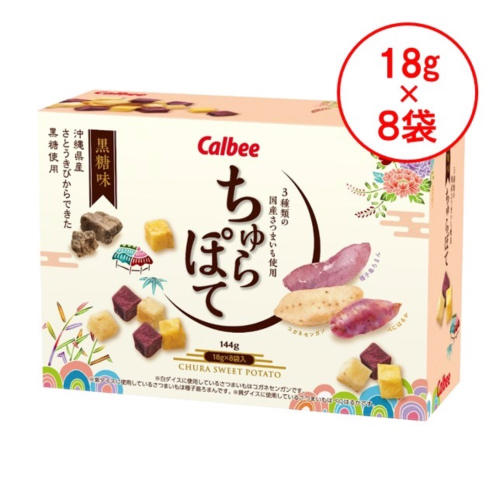 3種國產地瓜(白:黃金千貫、黃:貝那利卡、紫:種子島羅門)用沖繩縣產甘蔗製成的黑糖進行調味。 因為切成一口大小的骰子,所以吃起來很方便。 請享受各自的味道和色彩。