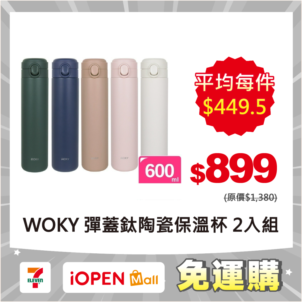 【7-ELEVEN 門市團購】WOKY輕量彈蓋鈦陶瓷易潔層保溫杯600ml(2入)組一支450元
