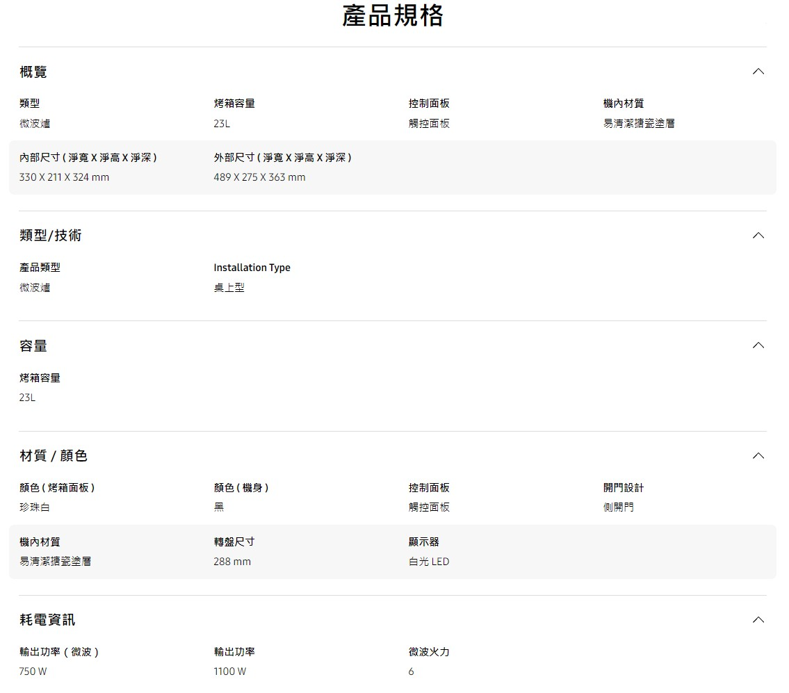 SAMSUNG三星 23公升 玻璃觸控面板 微波爐 珍珠白MS23T5018GE/TW