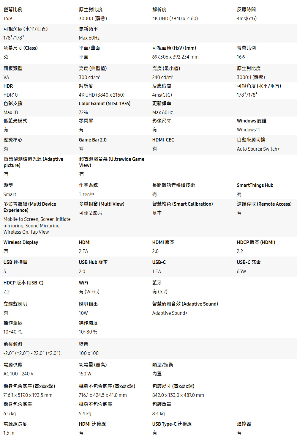 Samsung 三星S32FM703UC-FollowMe Pro 60Hz 4K 原廠立架移動式 智慧聯網螢幕