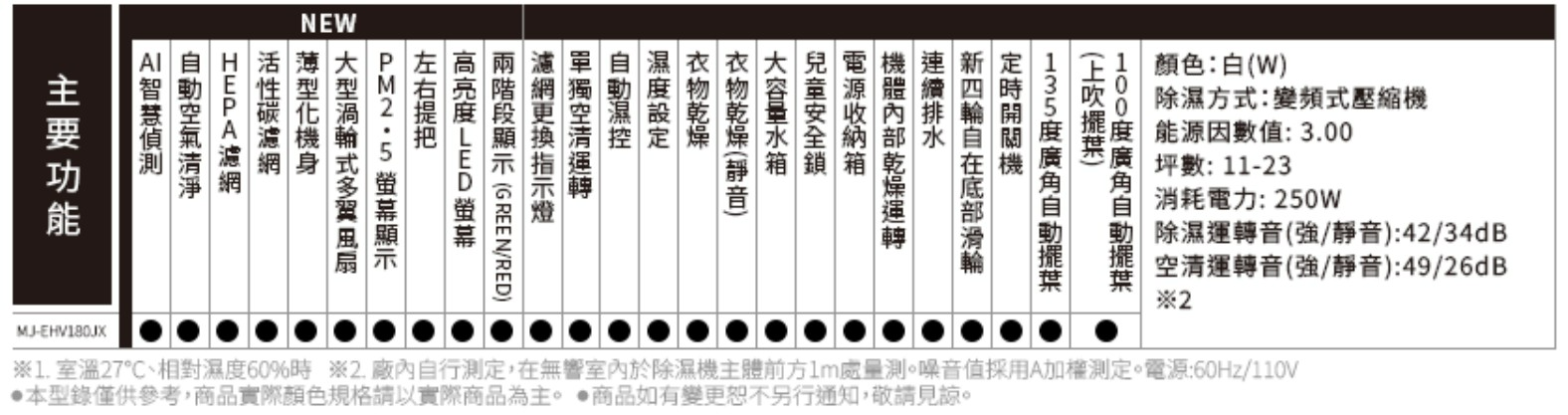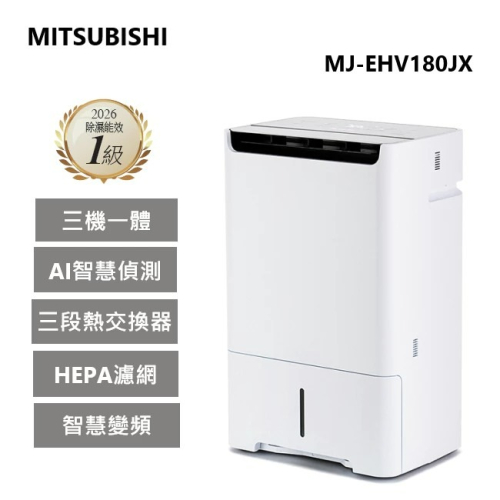 退貨物稅 MITSUBISHI 三菱 MJ-EHV180JX 變頻空氣清淨除濕機 18公升 日本製
