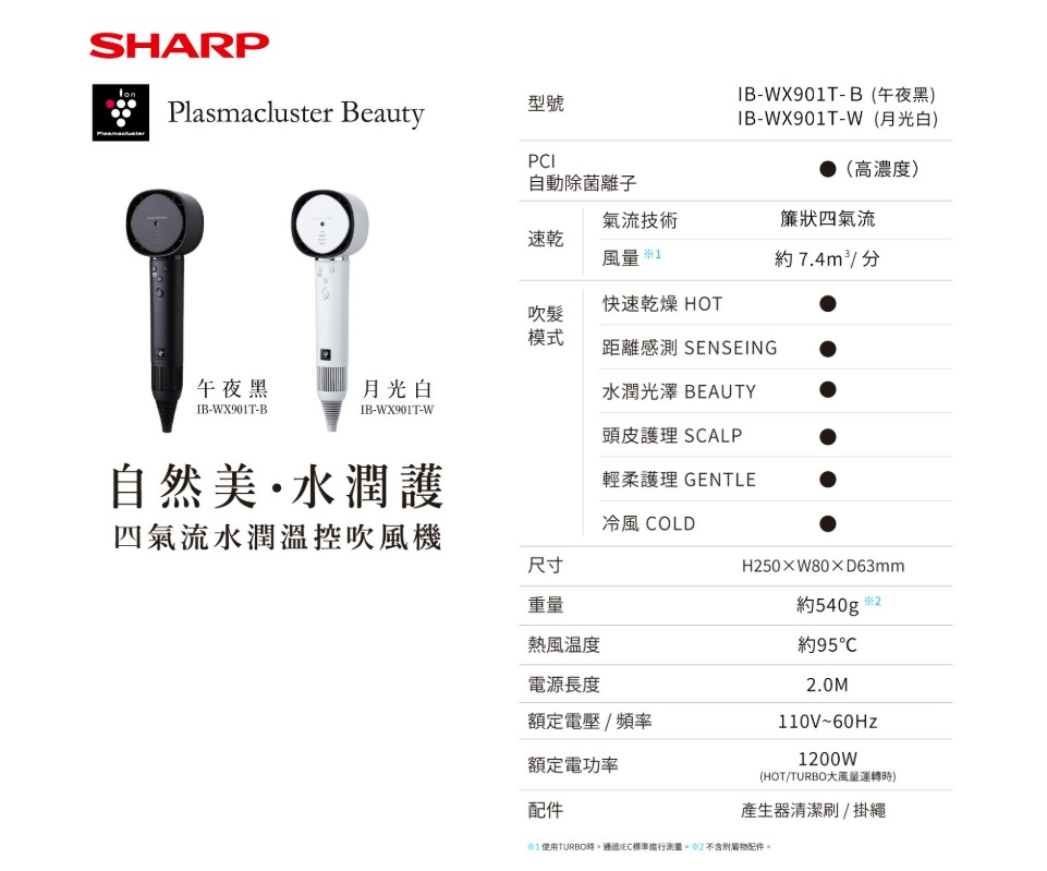 SHARP夏普 四氣流水潤溫控吹風機IB-WX901T