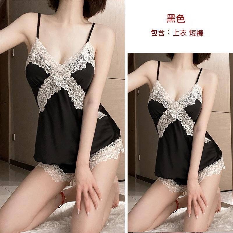 台灣出貨💕現貨✨性感深V情趣睡衣蕾絲吊帶睡裙女大碼兩件套家居服套裝