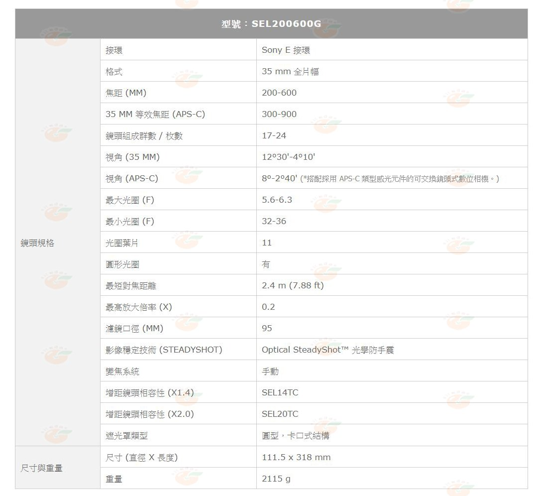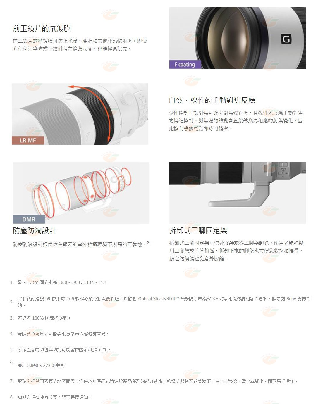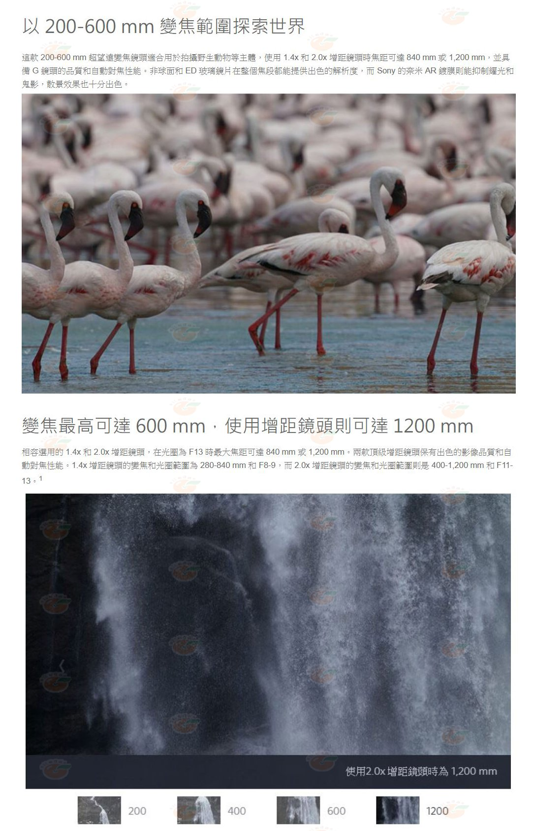 SONY SEL200600G FE 200-600mm F5.6-6.3 G OSS 超望遠鏡頭公司貨