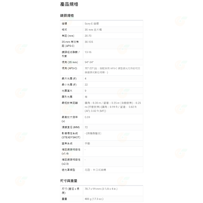 送註冊禮 SONY SEL2070G FE 20-70mm F4 G 超廣角標準變焦鏡頭 20-70 全幅鏡 公司貨