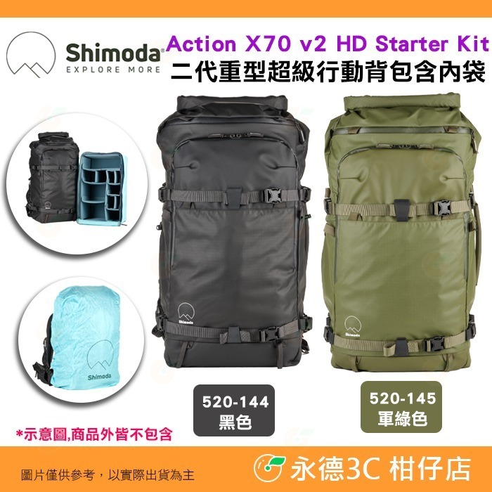 **套組包括一個 Action X70 HD 背包、520-247 X-Large v2 DV核心內袋、頭盔帶和雨套