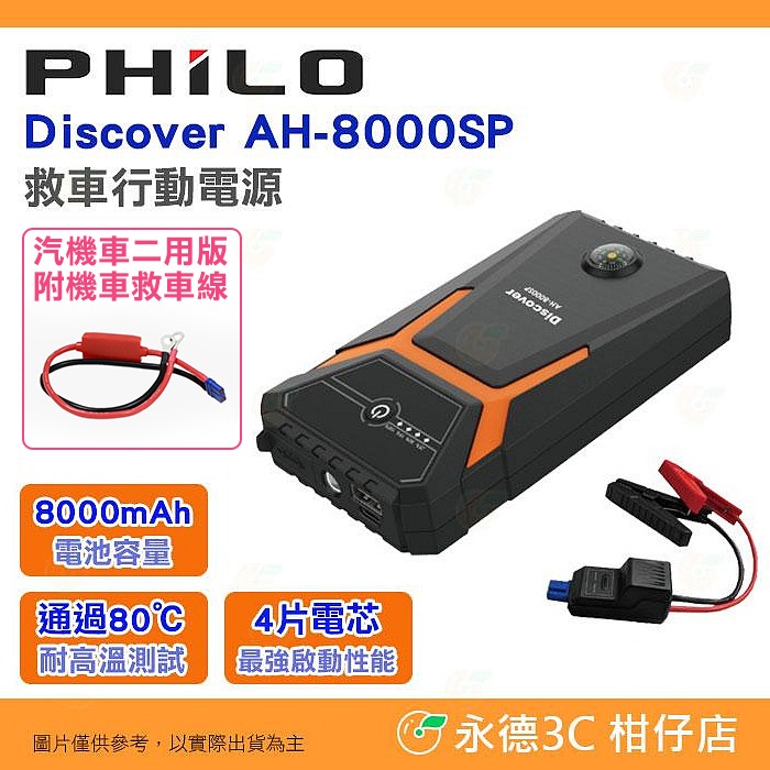 Philo Discover AH-8000SP 救車行動電源 標準版汽車用 汽機車二用版 公司貨 8000mAh