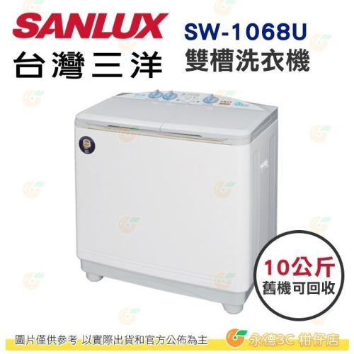 含拆箱定位+舊機回收 台灣三洋 SANLUX SW-1068U 雙槽 洗衣機 10Kg 公司貨 半自動 水流式