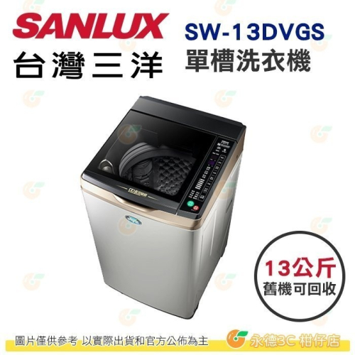 送好禮 含拆箱定位+舊機回收 台灣三洋 SANLUX SW-13DVGS 單槽 洗衣機 13kg 公司貨