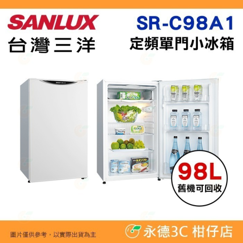 含拆箱定位+舊機回收 台灣三洋 SANLUX SR-C98A1 定頻單門冰箱 98L 1級能效 小冰箱 套房 7段溫度調
