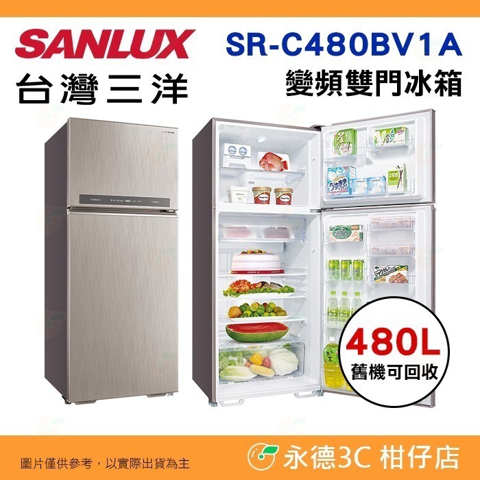 送好禮 含拆箱定位+舊機回收 台灣三洋 SANLUX SR-C480BV1A 變頻雙門電冰箱 480L 急速冷凍 1級節