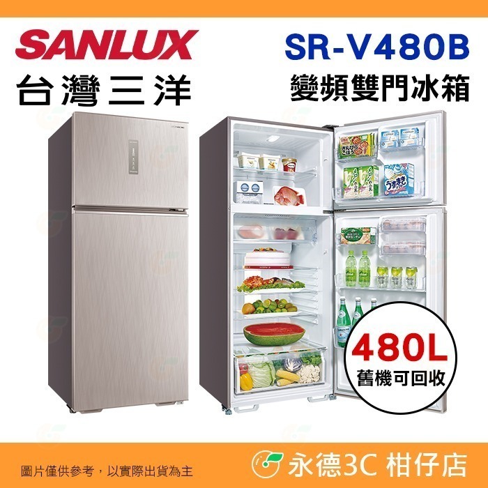 送好禮 含拆箱定位+舊機回收 台灣三洋 SANLUX SR-V480B 變頻雙門電冰箱 480L 1級節能 觸控溫控