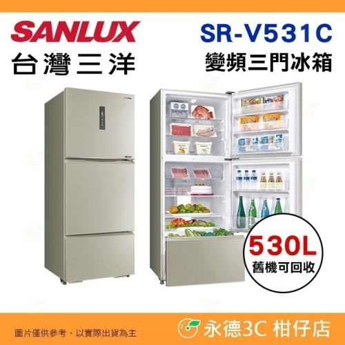 含拆箱定位+舊機回收 台灣三洋 SANLUX SR-V531C 變頻三門電冰箱 530L 一級能效 大冷凍室
