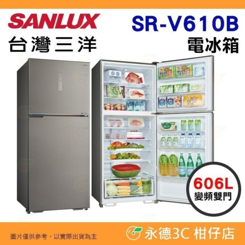送好禮 含拆箱定位+舊機回收 台灣三洋 SANLUX SR-V610B 變頻雙門 電冰箱 606L 公司貨 省電