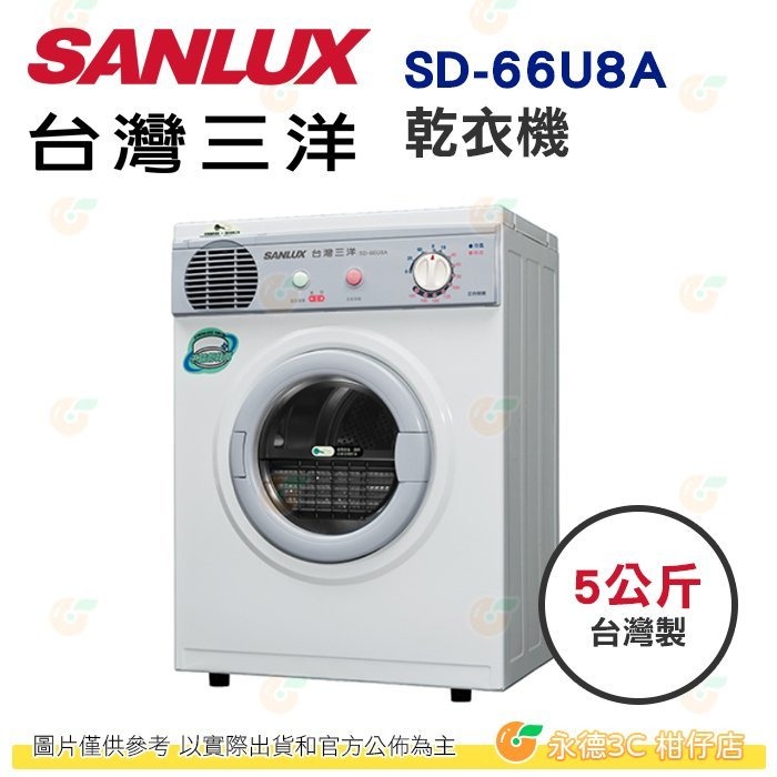 含拆箱定位 台灣三洋 SANLUX SD-66U8A 乾衣機 5Kg 公司貨 台灣製 烘衣機 不鏽鋼內槽 定時裝置 冷風