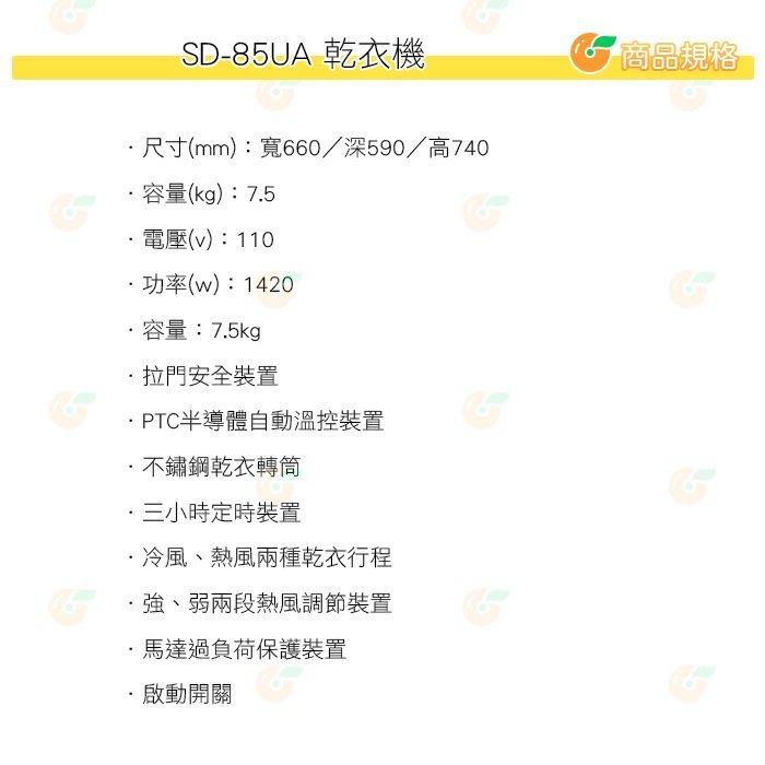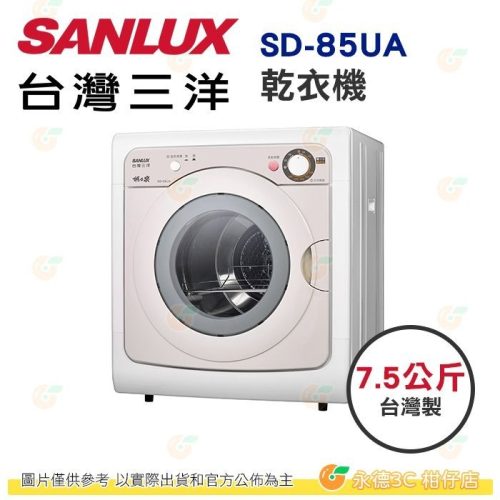 含拆箱定位 台灣三洋 SANLUX SD-85UA 乾衣機 烘衣機 7.5Kg 公司貨 台灣製 烘衣機 不鏽鋼內槽 定時