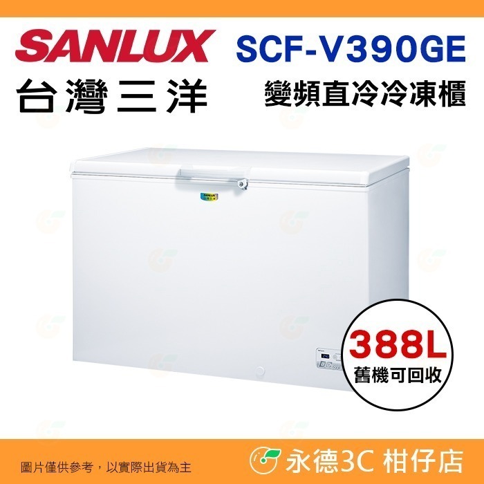 送好禮 含拆箱定位+舊機回收 台灣三洋 SANLUX SCF-V390GE 上掀式直冷式 冷凍櫃 388L 變頻