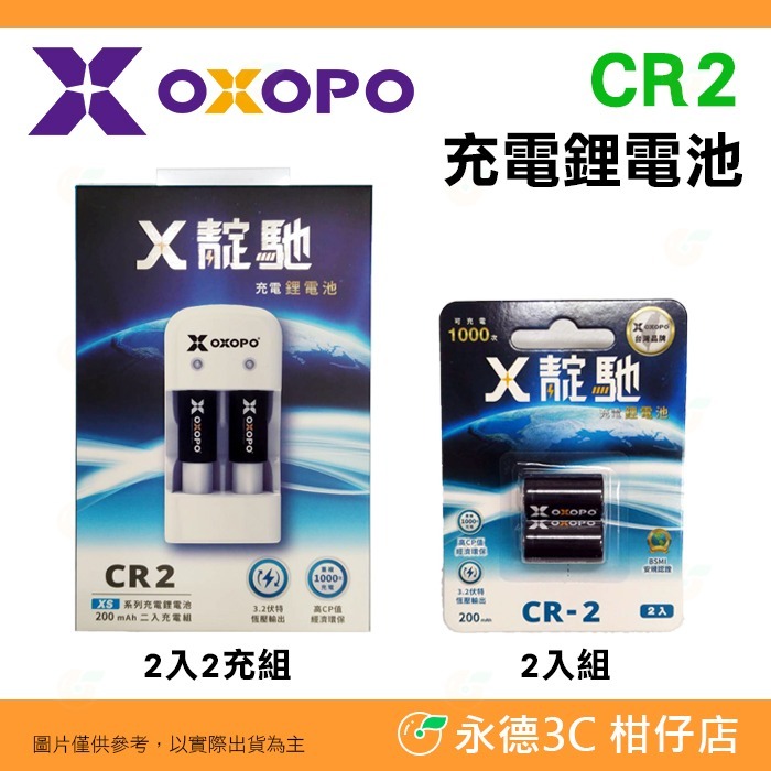 乂靛馳 OXOPO XS系列 CR2 充電鋰電池 *2+充電器 公司貨 鋰電池 座充組