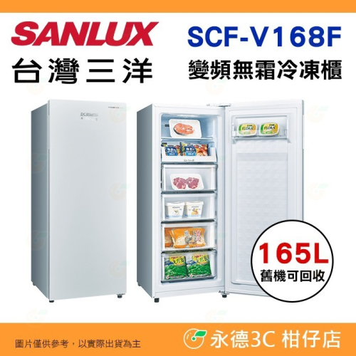 含拆箱定位+舊機回收 台灣三洋 SANLUX SCR-V168F 直立無霜冷凍櫃 165L 變頻 采晶強化玻璃