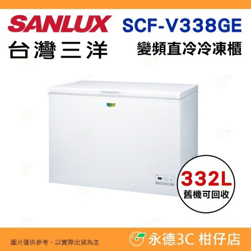 送好禮 含拆箱定位+舊機回收 台灣三洋 SANLUX SCF-V338GE 上掀式直冷式 冷凍櫃 332L 變頻