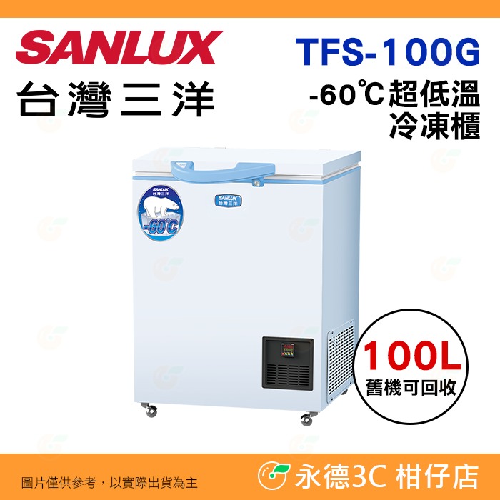 含拆箱定位+舊機回收 台灣三洋 SANLUX TFS-100G 上掀式冷凍櫃 -60℃超低溫 100L 小型 家用 商用