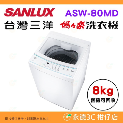 含拆箱定位+舊機回收 台灣三洋 SANLUX ASW-80MD 單槽 洗衣機 8kg 窄身 套房 智慧控制