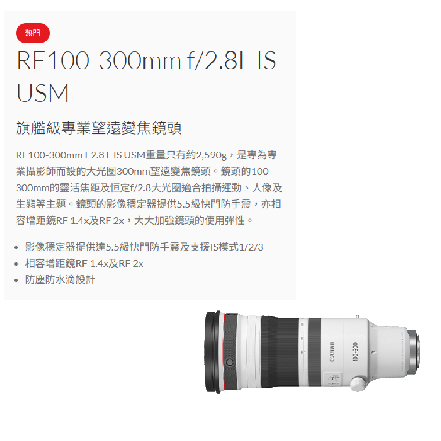 Canon RF 100-300mm f2.8 L IS USM 望遠變焦鏡頭 大砲 台灣佳能公司貨 100-300