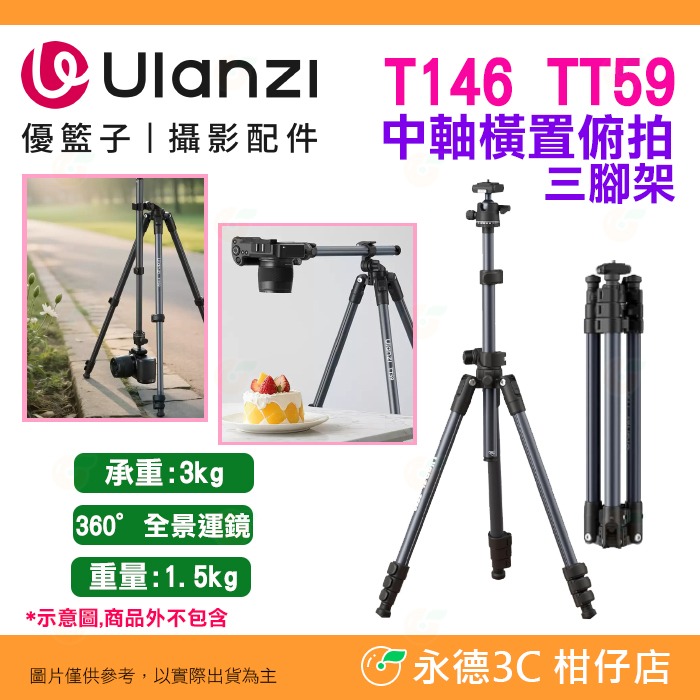 Ulanzi T146 TT59 中軸橫置俯拍三腳架 橫豎俯仰 多機位拍攝 反折腳架 適用 相機 自拍 直播 旅遊