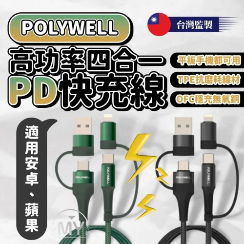 品名:USB-A+USB-C+Lightning 四合一PD編織快充線