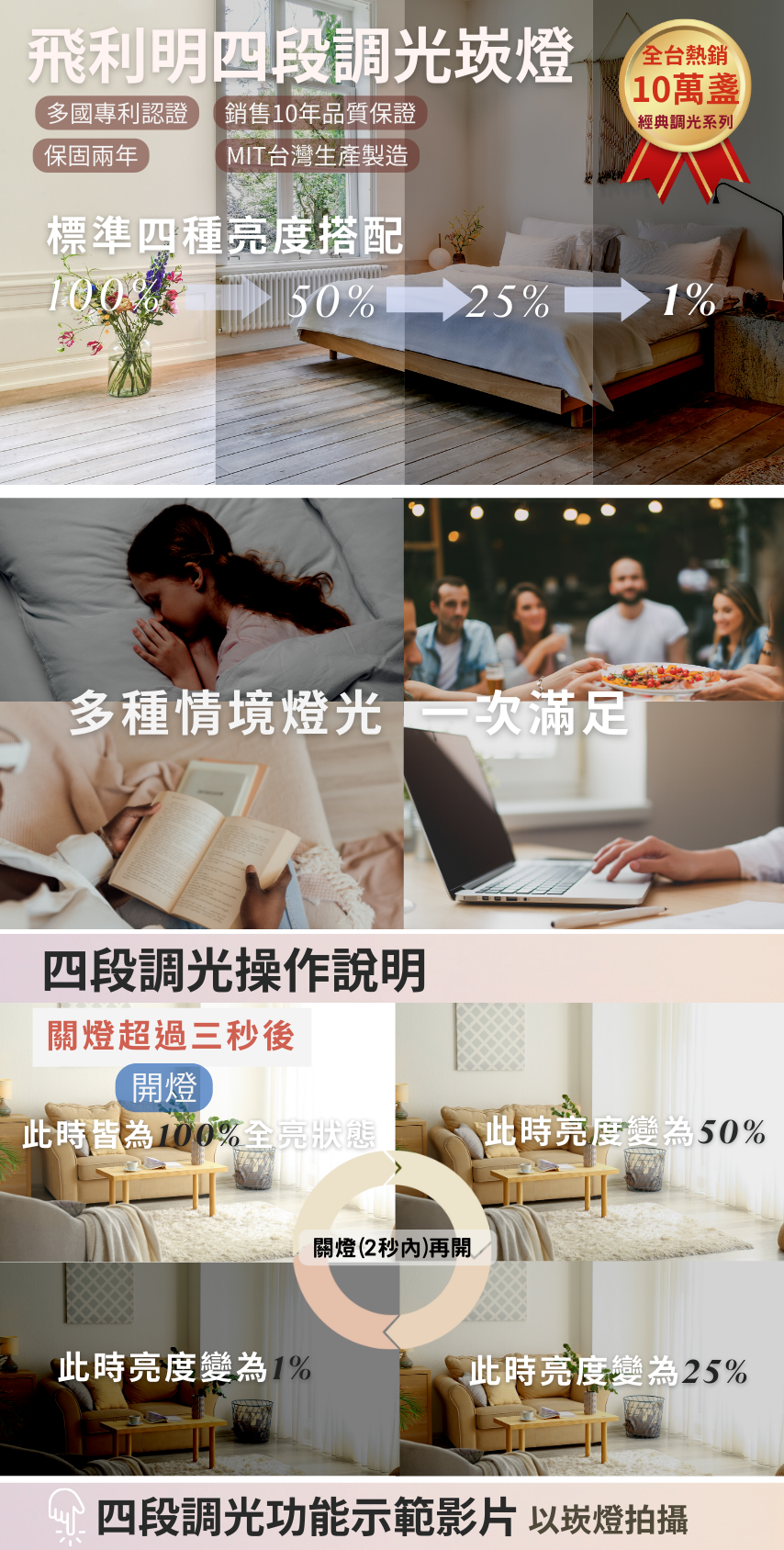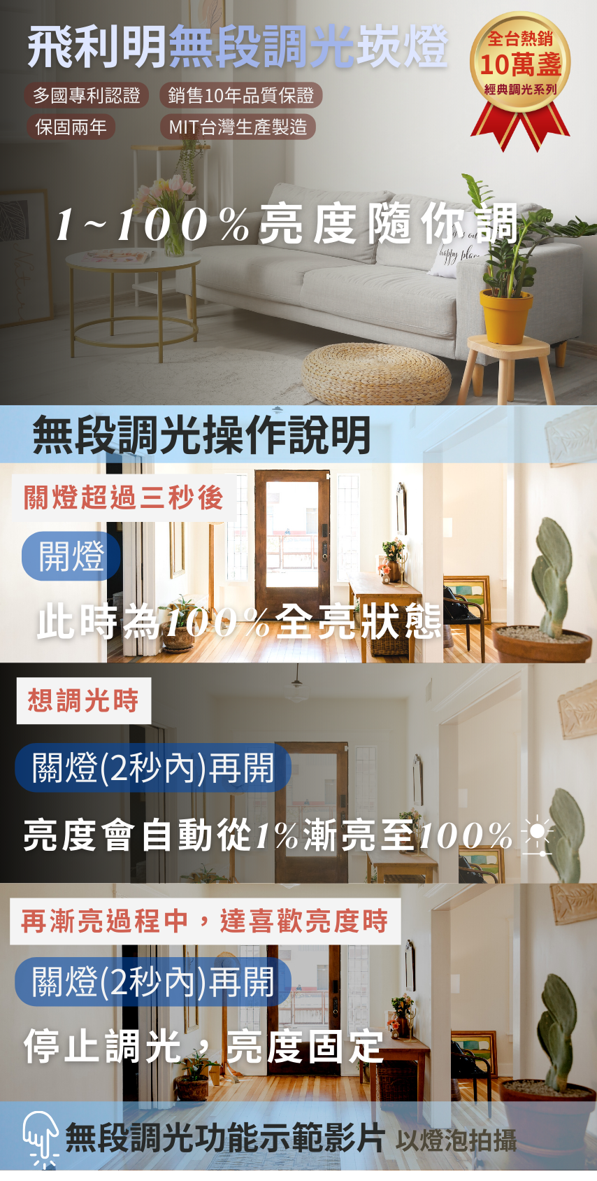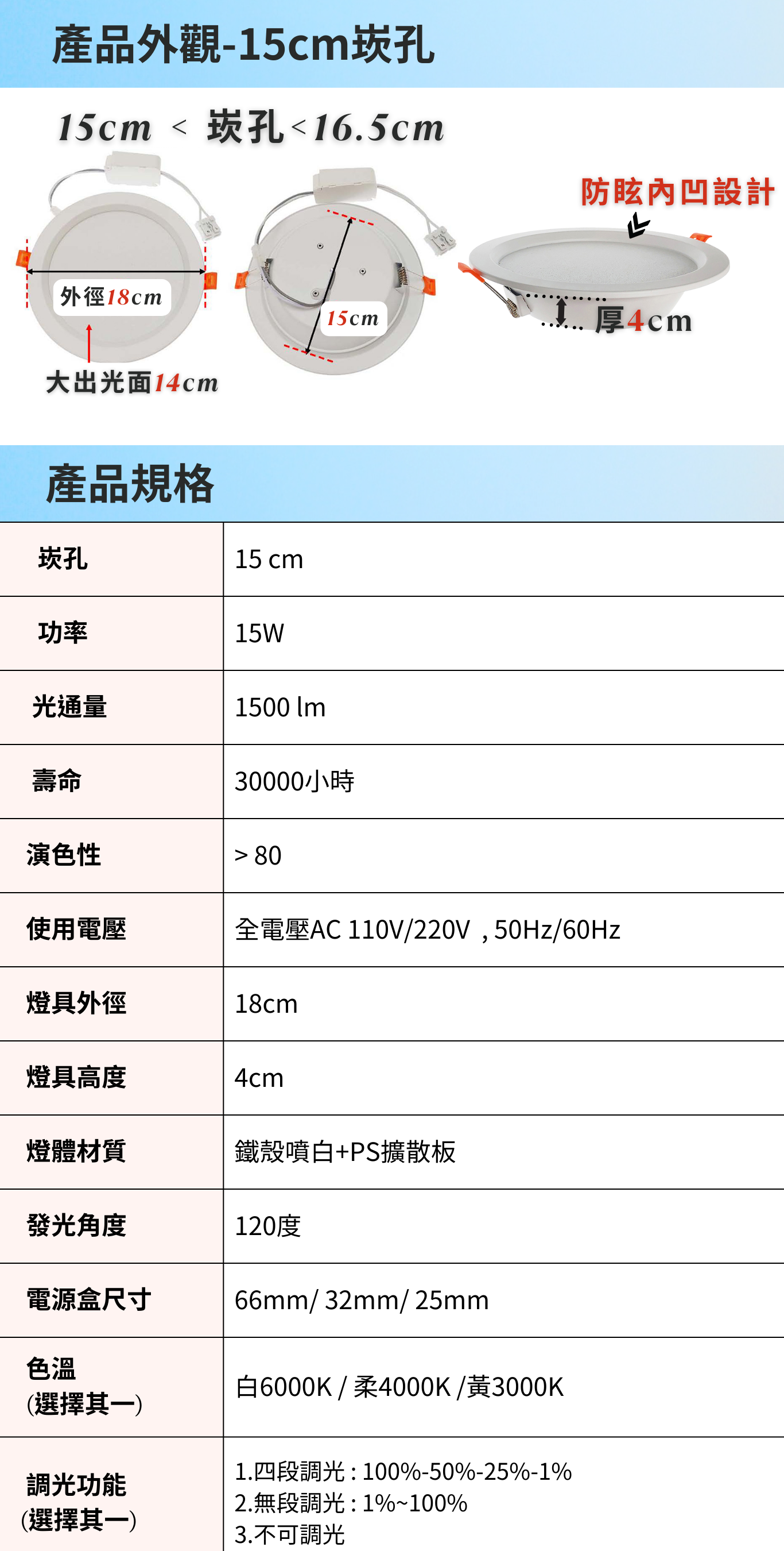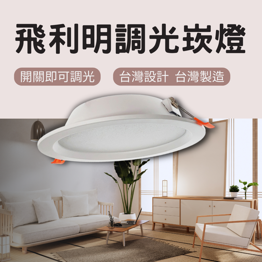 台灣設計台灣製造 飛利明調光崁燈15cm/15W 傳統開關即可調光
