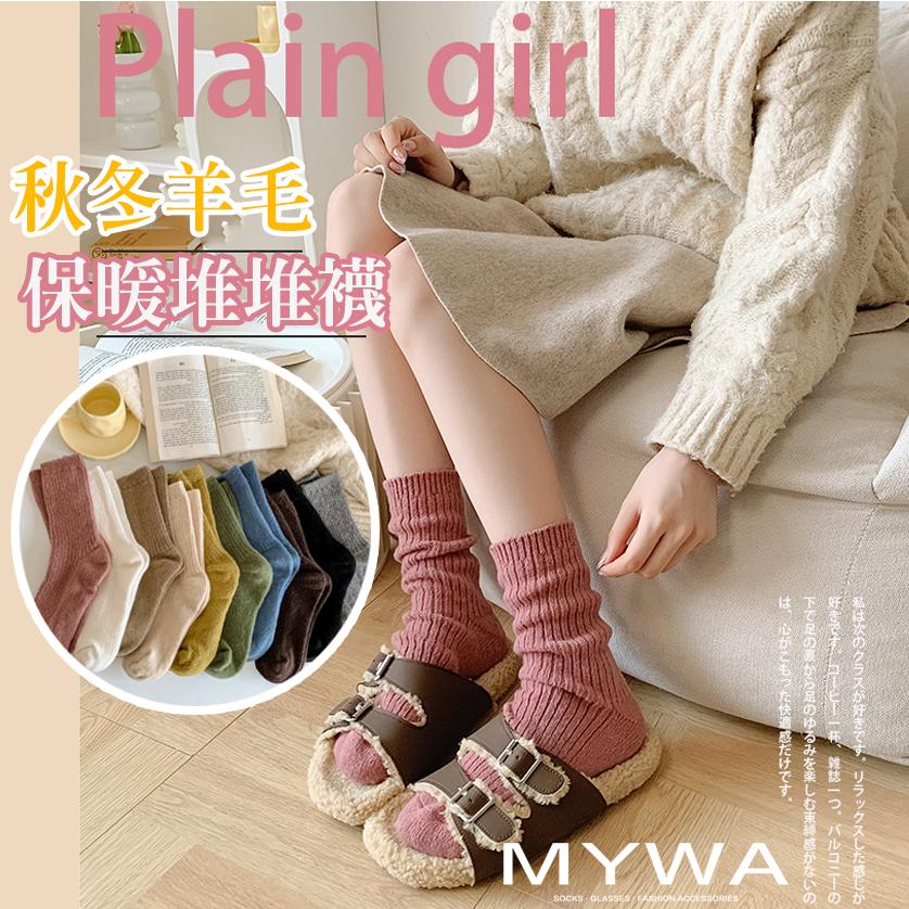 MyWa™️女生襪子系列 冬季加絨加厚羊毛襪 女士純色堆堆襪 針織襪 保暖襪 W04