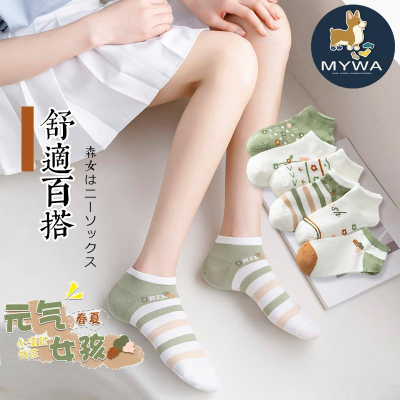 MyWa™️森林色日系短襪 綠色女襪系列 薄底船型襪 小花線條紋 W68