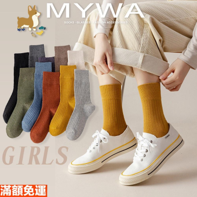 MyWa™️女生襪子系列 韓版莫蘭迪色長襪 時尚純色中筒棉襪素面襪款現貨 W45