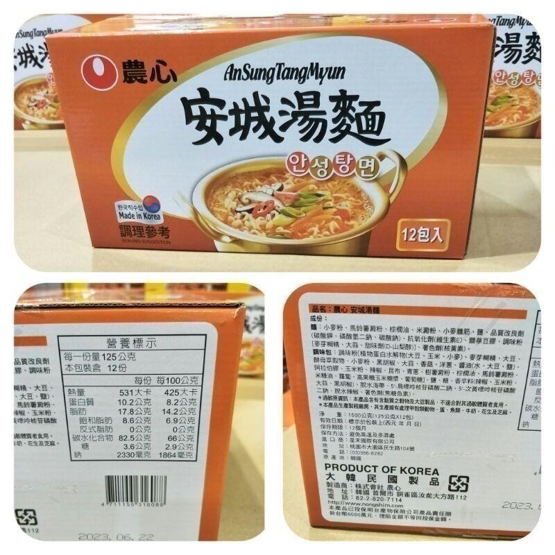 #371 農心安城湯麵 125公克 X 12包 #144777 好市多代購 湯麵 農心 安城 麵 泡麵 方便麵
