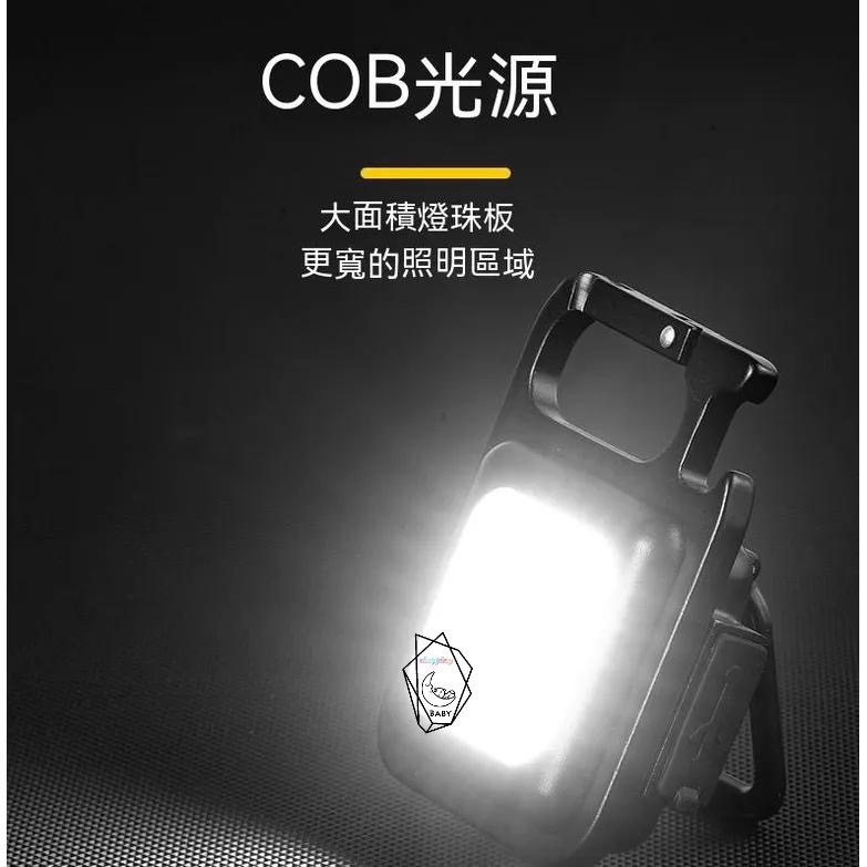 手電筒 腳踏車燈 安全 COB迷你金屬鑰匙扣燈工作燈汽車維修燈家用應急小夜燈USB充電野營燈應急燈檢修燈開瓶器露營燈帳篷