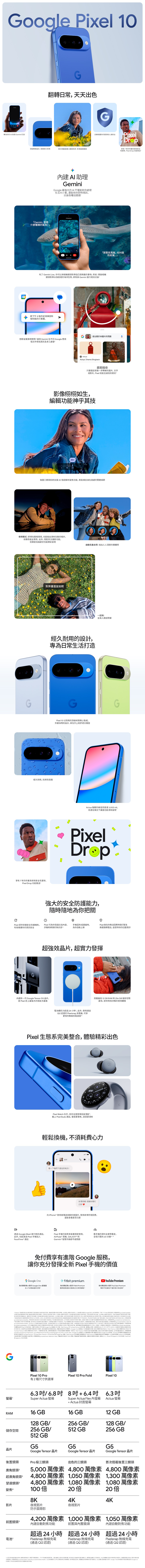 • 極致耐用:7 年的作業系統更新、電池續航力超過 24 小時、Pixel Drop 功能推送