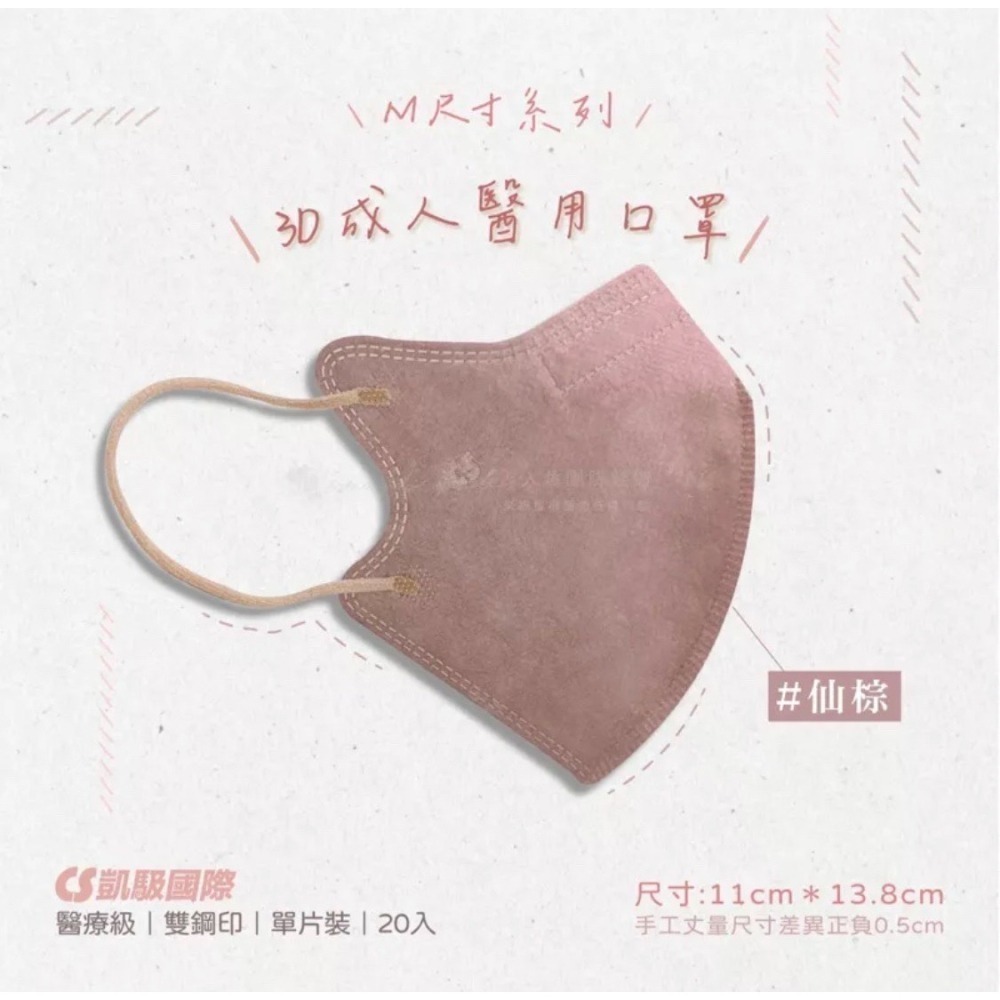 《宇霖生醫》凱馺國際「M號」仙蹤色 成人3D立體醫療口罩 20片入 單片包裝 不脫妝 透氣親膚 凱馺3d