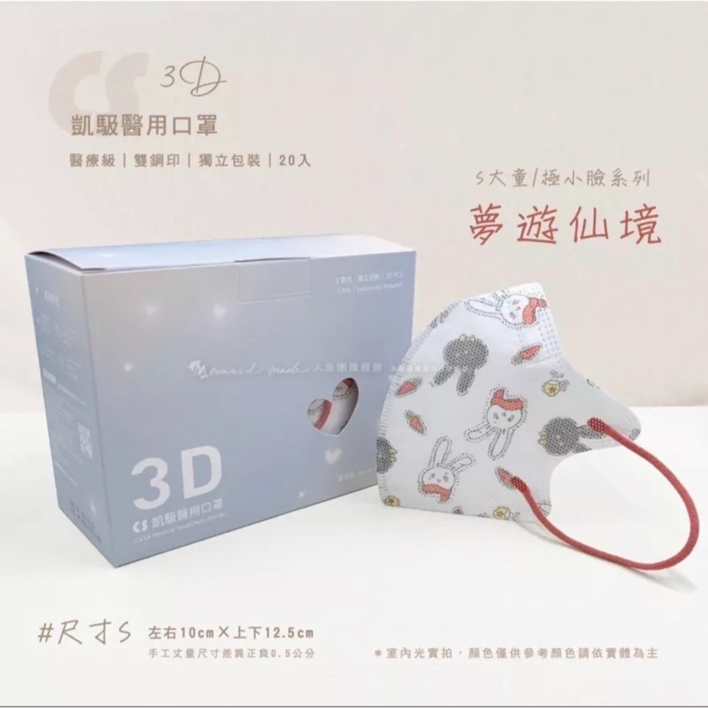 《宇霖生醫》凱馺國際「S號」夢遊仙境 兒童3D立體醫療口罩 20片入 極小臉 單片包裝 不脫妝 透氣親膚 凱馺3d