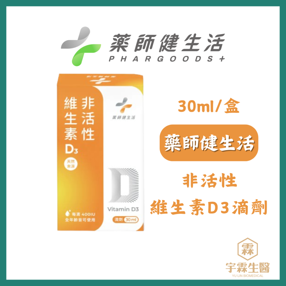 【藥師健生活】非活性維生素D3 30ml/盒 蛋奶素 專業 滴劑 400IU 維他命 天然萃取 宇霖生醫
