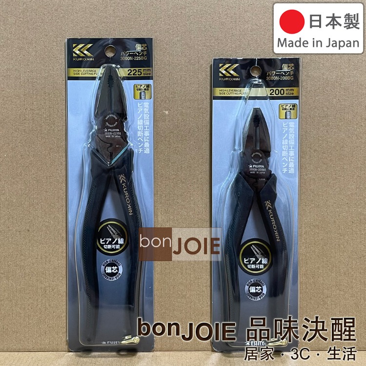 FUJIYA 日本富士箭 KUROKIN 黑金系列 3000N-225BG 225mm 偏芯鋼絲鉗