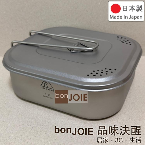 日本製 TITAN MANIA 鈦製 方形露營鍋 1100ml 便當盒 煮飯神器 方型鍋 方形炊具 附蓋 折疊手把 野炊