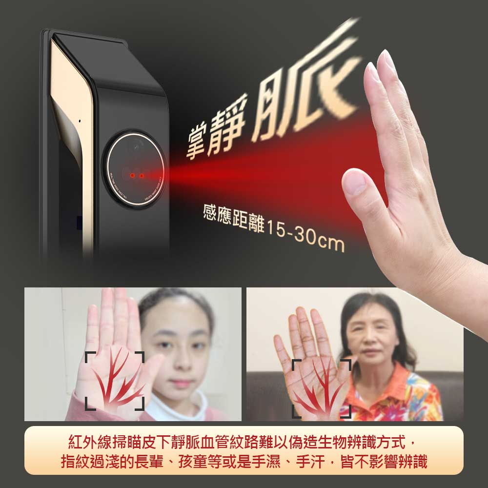 ◆掌靜脈辨識,擺脫指紋淺、手汗困擾。