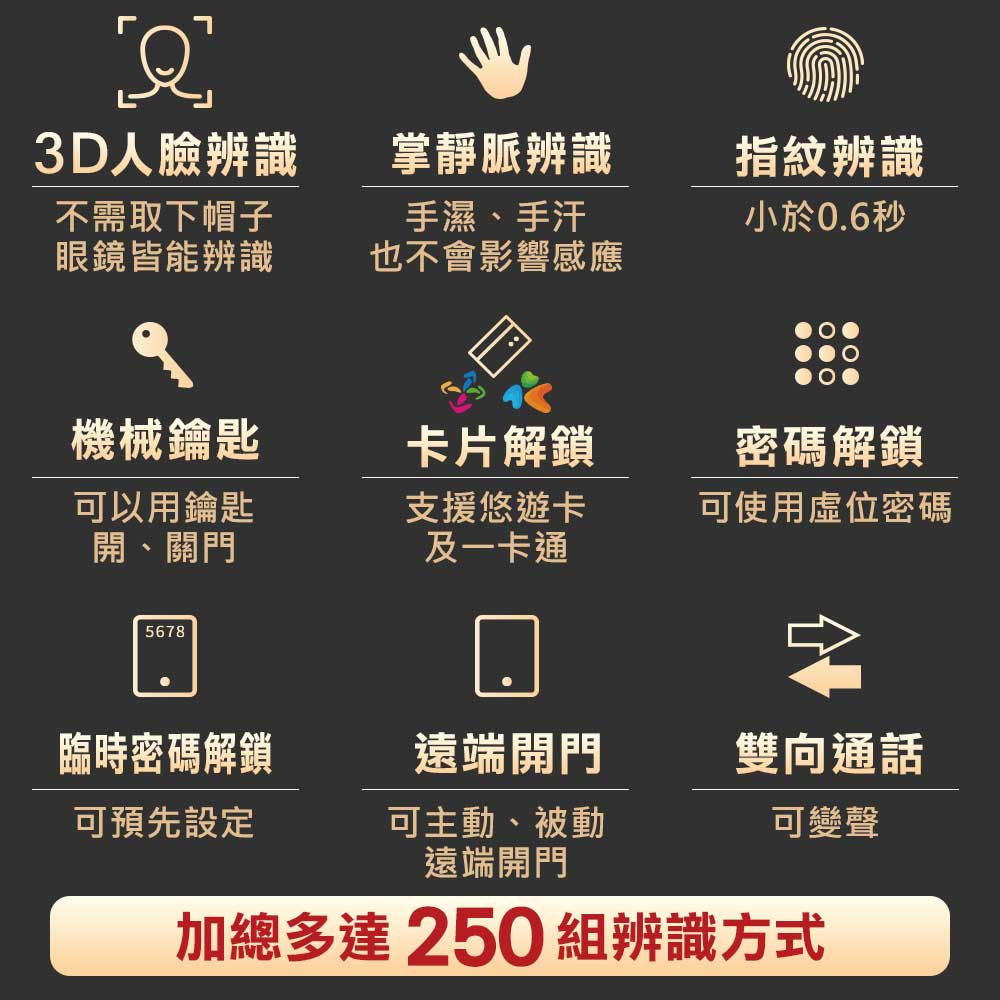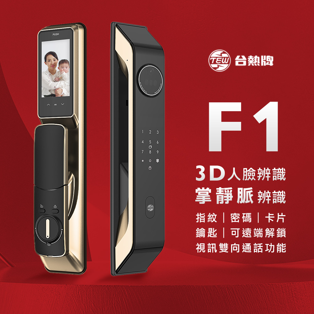 ◆商品:TEW台熱牌 8合1推拉式電子鎖(F1)(掌靜脈/人臉/指紋/密碼/卡片/鑰匙/APP遠端開門/雙向通話)(附基本安裝)