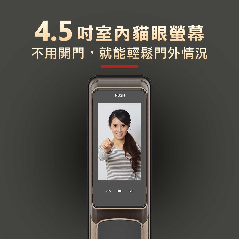 ◆4.5吋貓眼高解析IPS大螢幕,長按螢幕上方觸碰鍵可喚醒螢幕查看門外狀況。