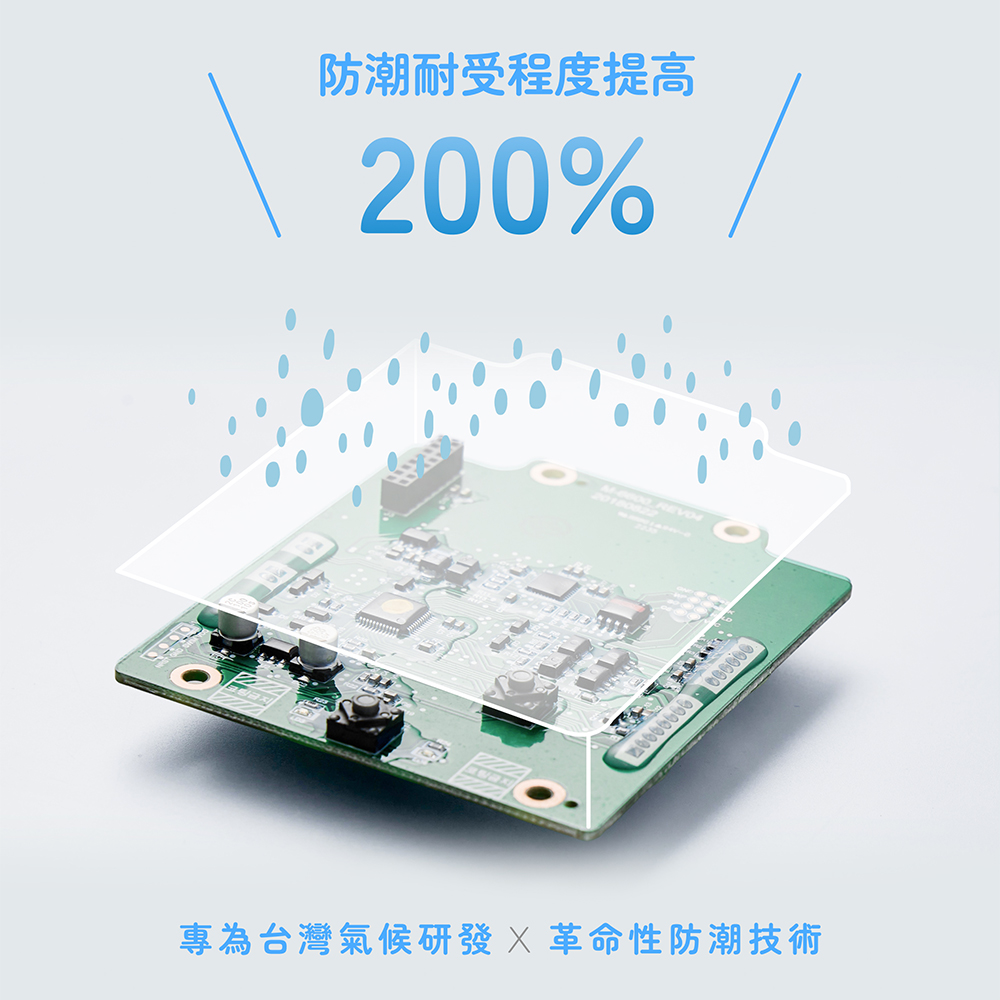 搭載防潮晶片與防靜電設計,專為台灣氣候與家庭需求打造。