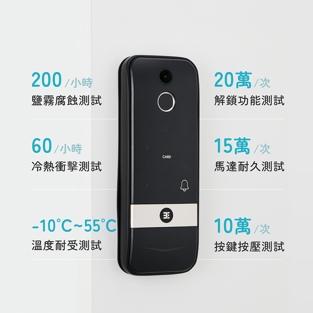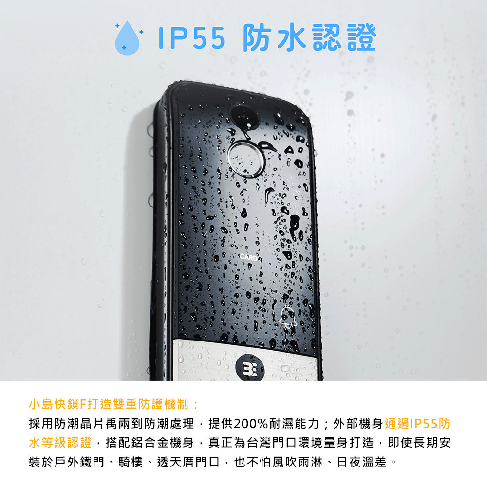 ◆IP55 防水係數,經過兩道防潮處理,提高電子鎖 200 % 的防潮耐受程度。